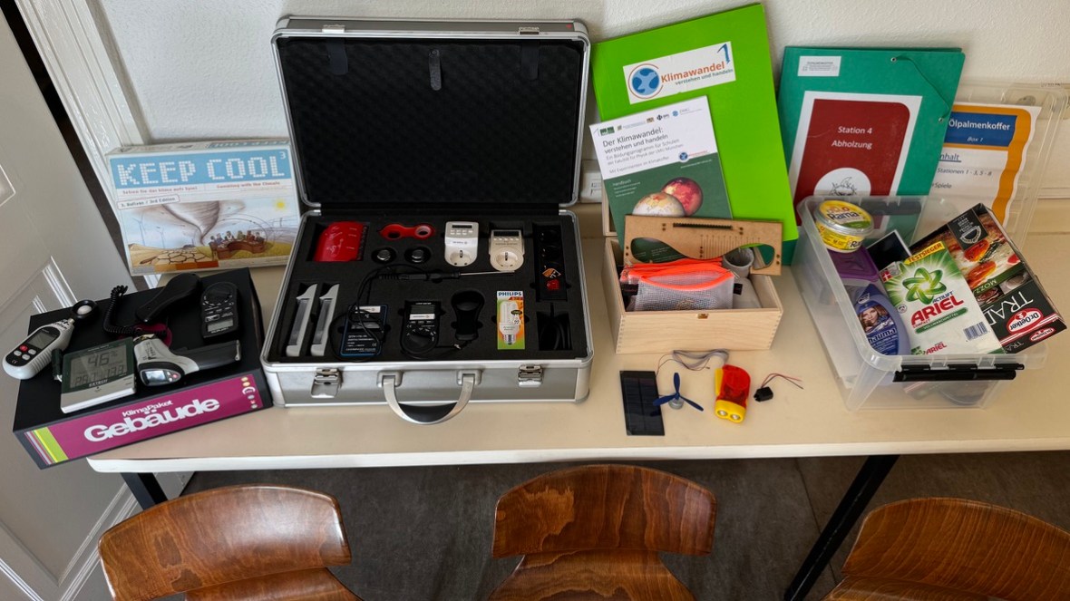 • In einer Fortbildungsveranstaltung im BNE-Zentrum am 24.6.24 probieren Lehrkräfte Experimentierkoffer aus.