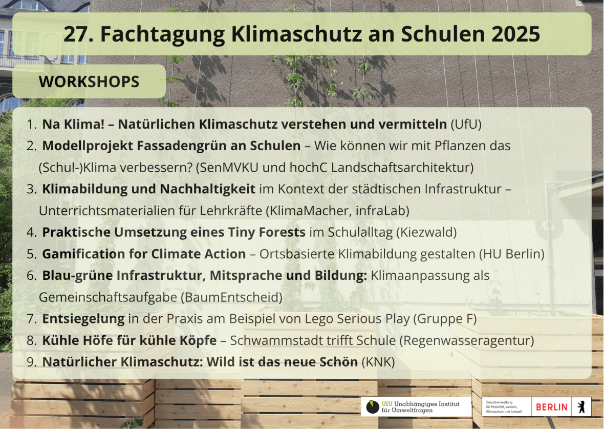 Auf seiner großen jährlichen Fachtagung stellt unser Partner UfU den natürlichen Klimaschutz als Ergänzung zu den Energieprojekten an Schulen vor. Der Themenkreis wurde auch im Rahmen unseres ERASMUS-Projekts bearbeitet.